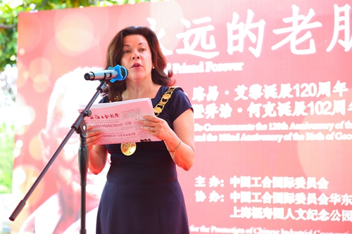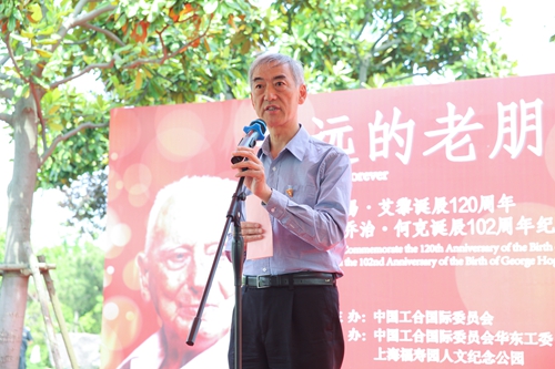 ▲工合国际在福寿园举行路易·艾黎诞辰120周年暨乔治·何克诞辰102周年纪念仪式 5月13日,“永远的老朋友——路易•艾黎诞辰120周年暨乔治•何克诞辰102周年纪念仪式”在上海福寿园人文纪念公园隆重举行。中国工合国际委员会主席柯马凯、副主席李建平,中国人民对外友好协会常委、副巡视员徐凤华,国际殡葬协会主席Teresa以及众多工合委员、社会各界相关人士约一百八十余人参加了此次活动。