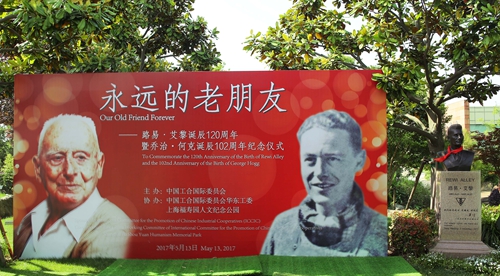 ▲乔治·何克纪念像 乔治•何克1937年来到中国,在亲眼目睹被日本人占领的上海之悲惨景象后,他决定留下来,实地了解中国人民面临的问题。在艾黎先生主要发起组织的工业合作社运动中,两个志同道合的年轻人找到了奋斗目标,他们组织失业工人和难民生产自救、积极支援抗战,为工合国际的建立、为中国人民的革命解放事业、社会主义建设事业做出了不可磨灭的贡献。